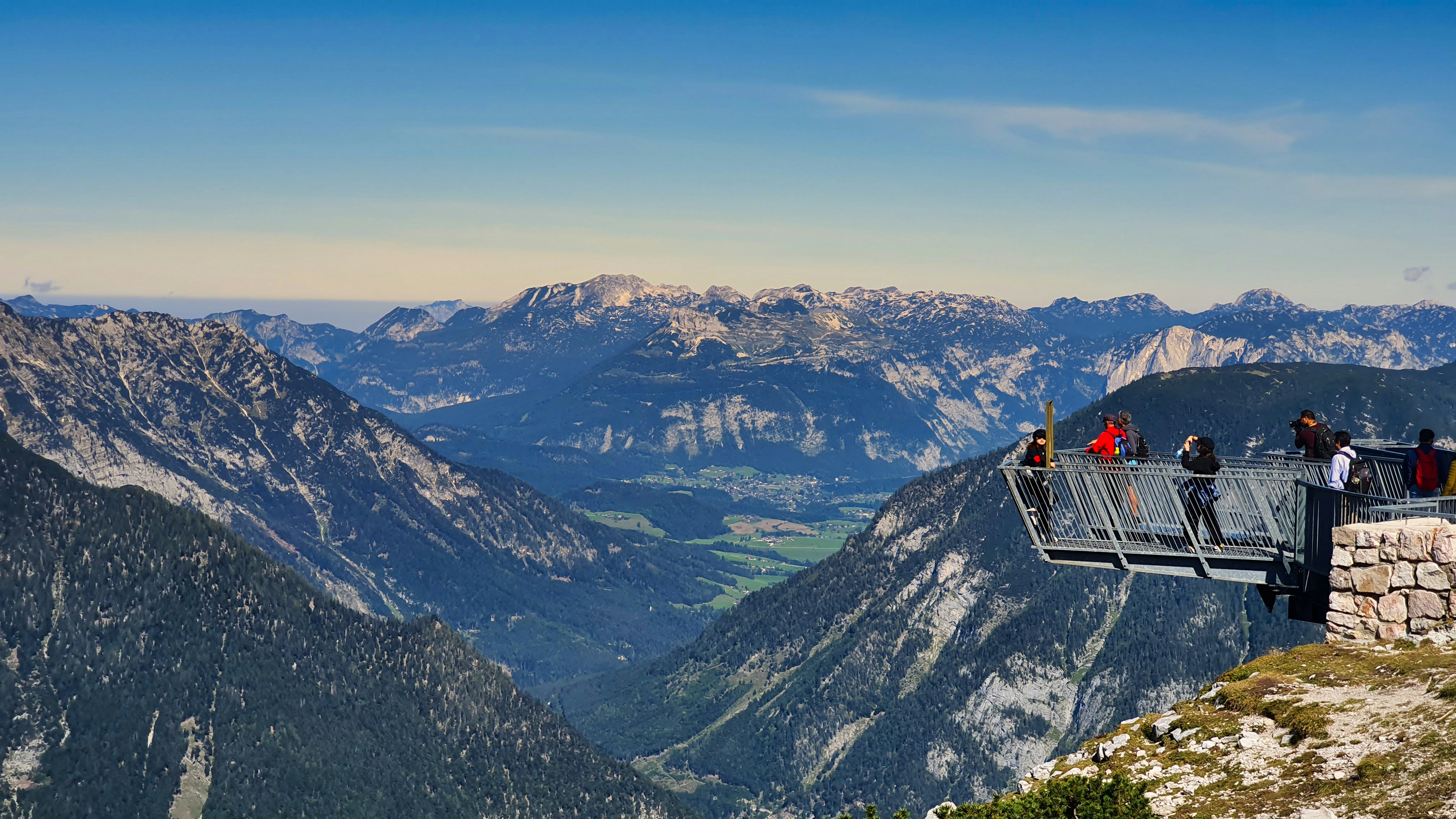 5핑거스의 다섯 플랫폼은 각각 다른 콘셉트로 설계되어 있습니다. 바닥이 투명 유리로 된 플랫폼은 발밑 900m 낭떠러지가 그대로 보여 고소공포증이 있는 분들에게는 도전적이지만, 그만큼 스릴도 대단합니다. 제가 가장 좋아했던 곳은 액자 모양으로 설계된 플랫폼인데, 이곳에서 찍은 사진은 지금도 제 핸드폰 배경화면입니다. 오스트리아 기상청 데이터에 따르면 이 지역의 연평균 맑은 날은 약 200일로,